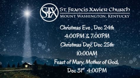 Reconciliation at St. Francis Xavier will be held on Tuesday, Dec 9th at 9AM following Daily Mass and on Wednesday, Dec 10th at 6:30PM during Children’s Faith Formation.