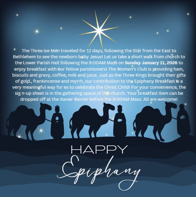 The Women’s Club is accepting donations for their Cake Wheel. Desserts can be dropped off at the Xavier Center on Friday, Nov 7th from 9AM-12PM or 4PM-7PM and Saturday after 8AM.
