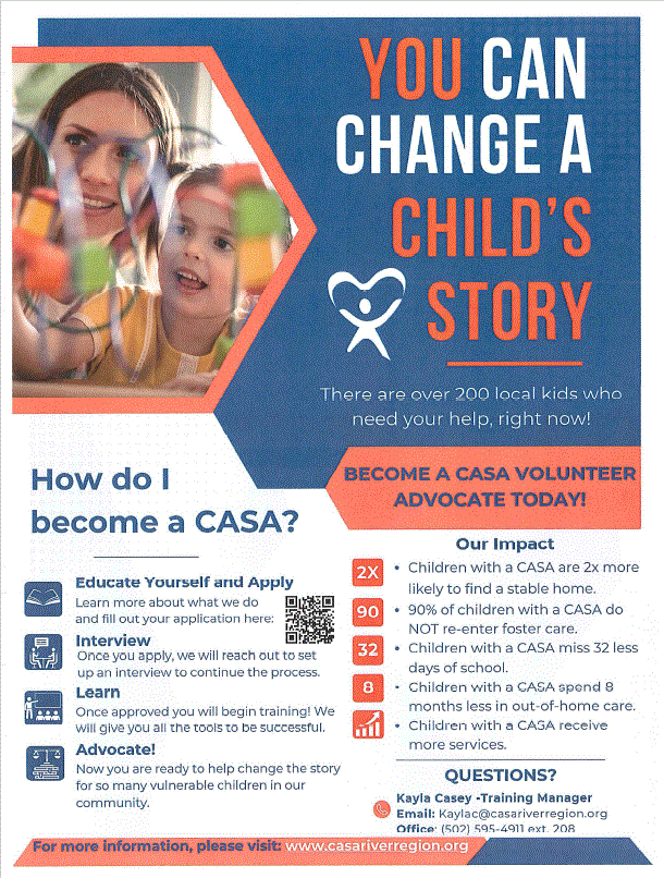 Court-Appointed Special Advocate (CASA) volunteers advocate for the best-interests of children who have experienced abuse or neglect. Volunteers work with child welfare professionals, educators and service providers to ensure that judges have the information they need to make the most well-informed decisions for each child.